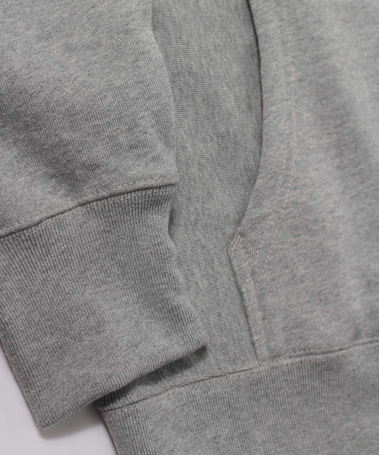 12オンスのヘビーウエイト裏起毛素材は、肌触りの良さと度目を詰めたガシッとした風合いが最大の特徴です。