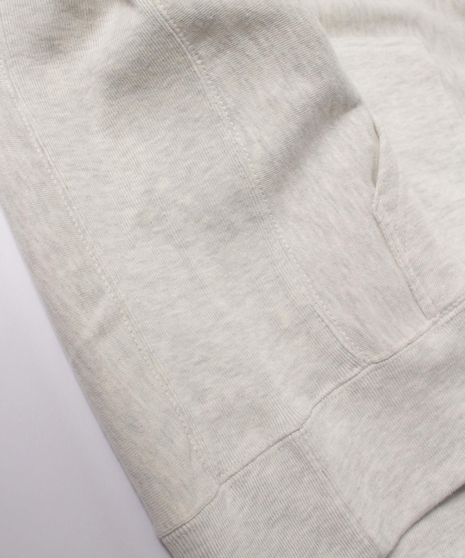 12オンスのヘビーウエイト裏起毛素材は、肌触りの良さと度目を詰めたガシッとした風合いが最大の特徴です。